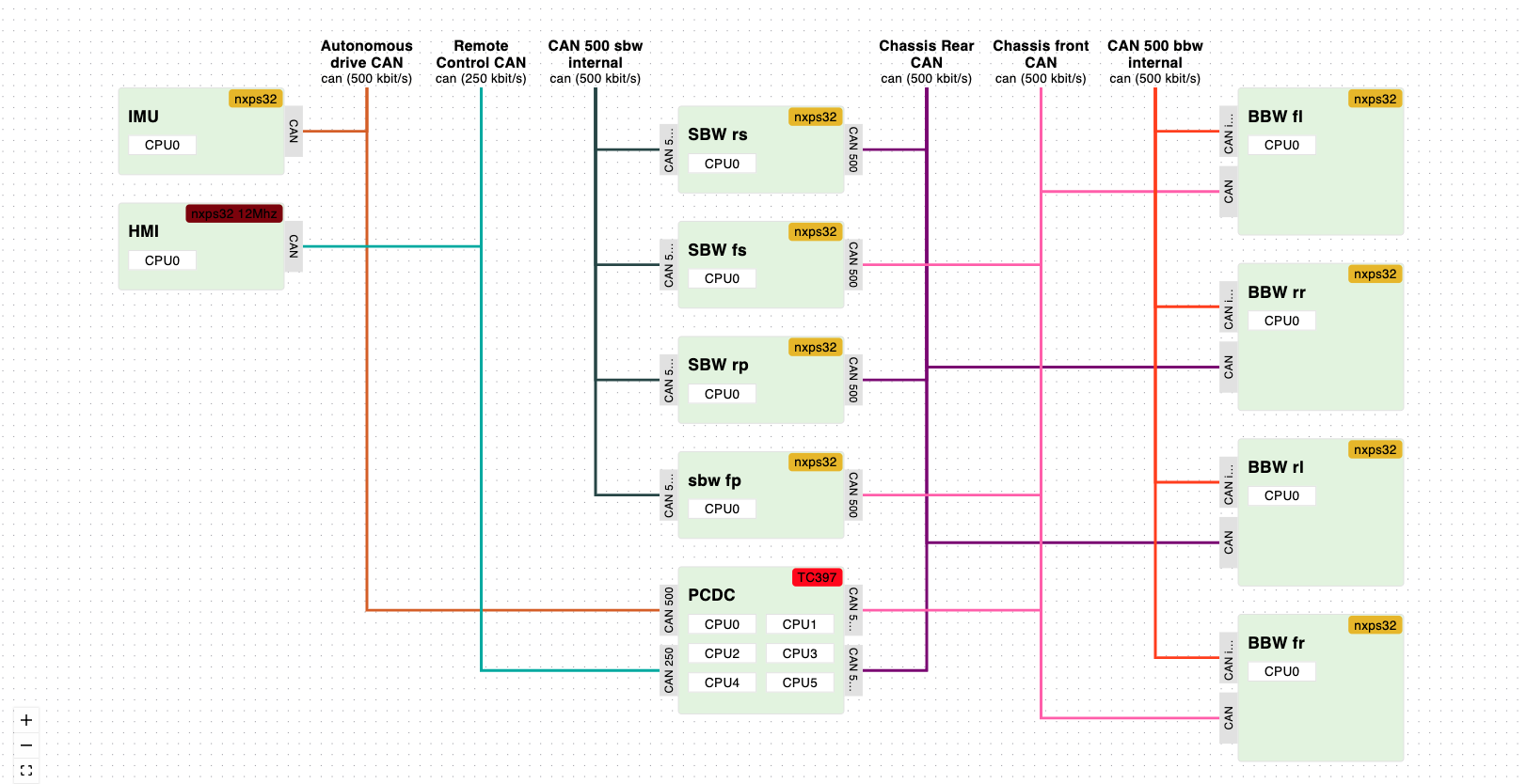 Above you can find how it looks like an ECU called PCDC, that implements an ECU Type that we have defined as TC397 and contains 4 network interfaces of type CAN.